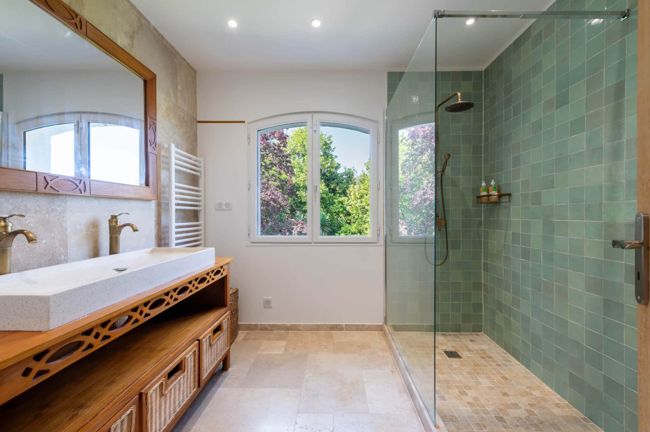 Sur 3 niveaux, la villa offre espaces communs généreux et intimité préservée : salon avec billard, cuisine professionnelle, terrasse ombragée. 4 salles d'eau, buanderie équipée. Au cœur d'un jardin arboré sans vis-à -vis. À 5 min du village de Valbonne, 10 min de l'Académie Mouratoglou, 30 min de l'aéroport Nice. Service conciergerie : chef privé, transferts, activités. Location exclusive, linge fourni, accueil personnalisé.